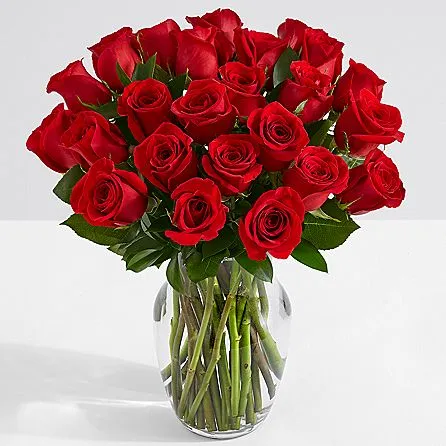 - 30 Large long stem Roses in vase.